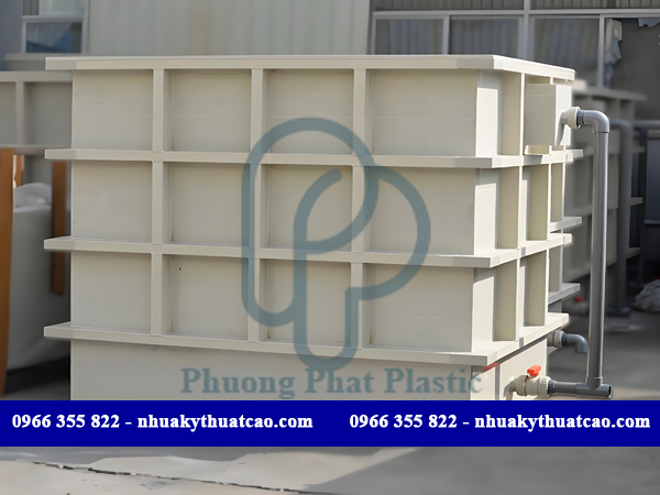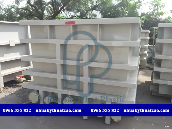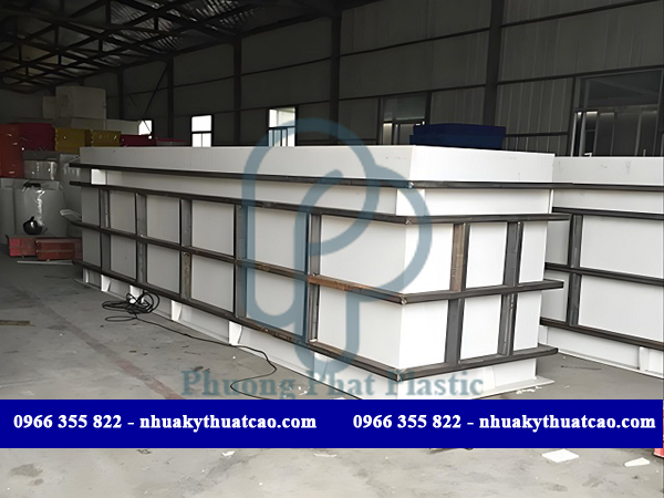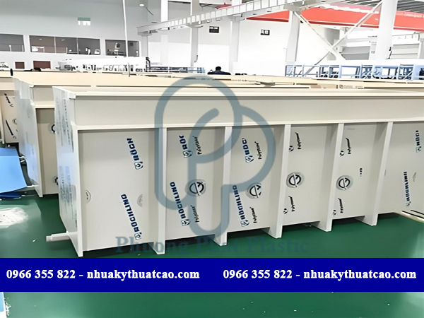 - Đặc tính của tấm nhựa PP hoặc tấm nhựa HDPE nguyên liệu gia công thành bồn chứa hoá chất chống ăn mòn, dễ dàng gia công chế tạo theo nhiều kích thước khác nhau.