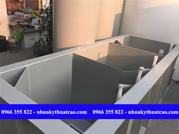 Nhựa PP là một loại nhựa nhiệt dẻo có nhiều đặc tính ưu việt, bao gồm độ bền, khả năng chịu hóa chất, và trọng lượng nhẹ. Cụ thể, nhựa PP có khả năng chống ăn mòn rất tốt, không bị oxy hóa hay phân hủy dưới tác động của các chất hóa học thường gặp trong nước thải như dầu, mỡ và các acid. Điều này giúp tăng tuổi thọ của bể tách dầu mỡ, giảm chi phí thay thế và bảo trì.